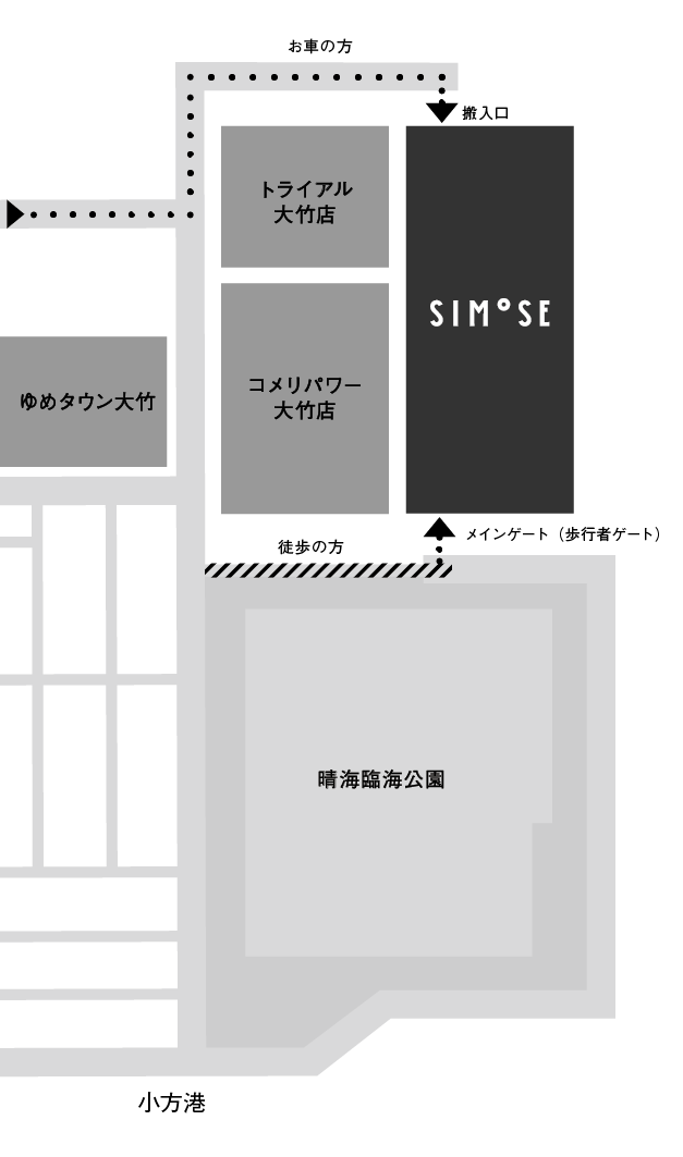 ○徒歩の方:メインゲート(歩行者ゲート)よりご来館ください